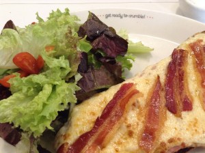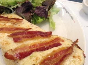 I picked Bartartine Cafe because they specialize in French baking. Before I arrived, I knew I wanted something with cheese and bacon. When I saw the Croque-Monsieur, I instantly chose it, but not without adding bacon to the mix. The Lebanese love their cheese and so do I. Swiss cheese, ham, and bacon served with a side salad, made for good eats. An obligatory latte made the bill as well.